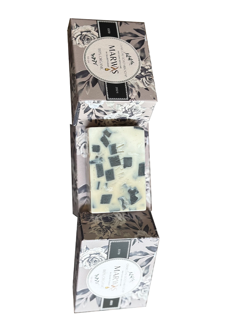 Marwas Charcoal Goat Milk Soap is a refreshing blend of deep-cleansing activated charcoal and nourishing goat milk, crafted to give your skin a pure, healthy glow. The charcoal draws out dirt, excess oil, and impurities from deep within the pores, while the creamy goat milk hydrates, soothes, and restores softness. Gentle enough for daily use, this handcrafted soap helps reduce acne, blackheads, and dullness, leaving your skin feeling clean, smooth, and naturally radiant. Perfect for all skin types, especially oily and sensitive skin.