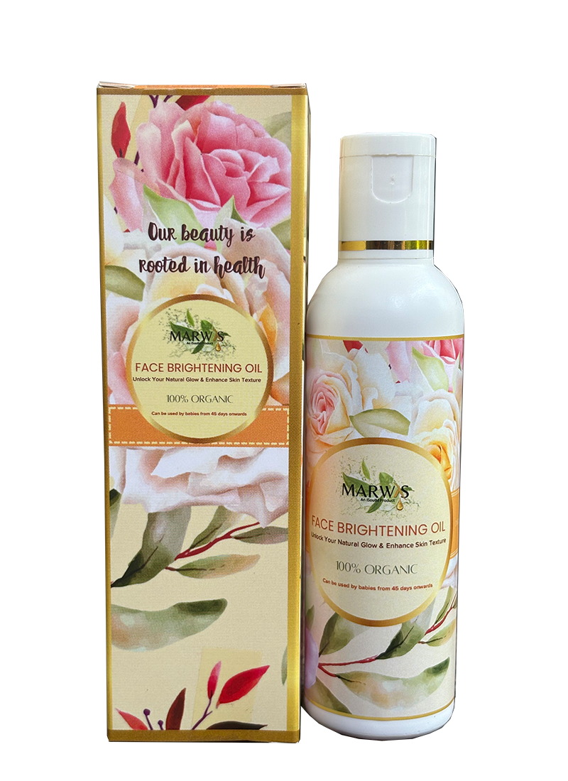 Marwas Face Brightening Oil is a lightweight, nourishing blend crafted to revive dull skin and enhance natural radiance. Enriched with potent botanical extracts and essential oils, it helps even out skin tone, fade dark spots, and improve overall texture. The fast-absorbing formula deeply hydrates without feeling greasy, leaving your skin soft, smooth, and visibly glowing. Suitable for daily use, this brightening oil gives your face a healthy, luminous finish while supporting long-term skin clarity.