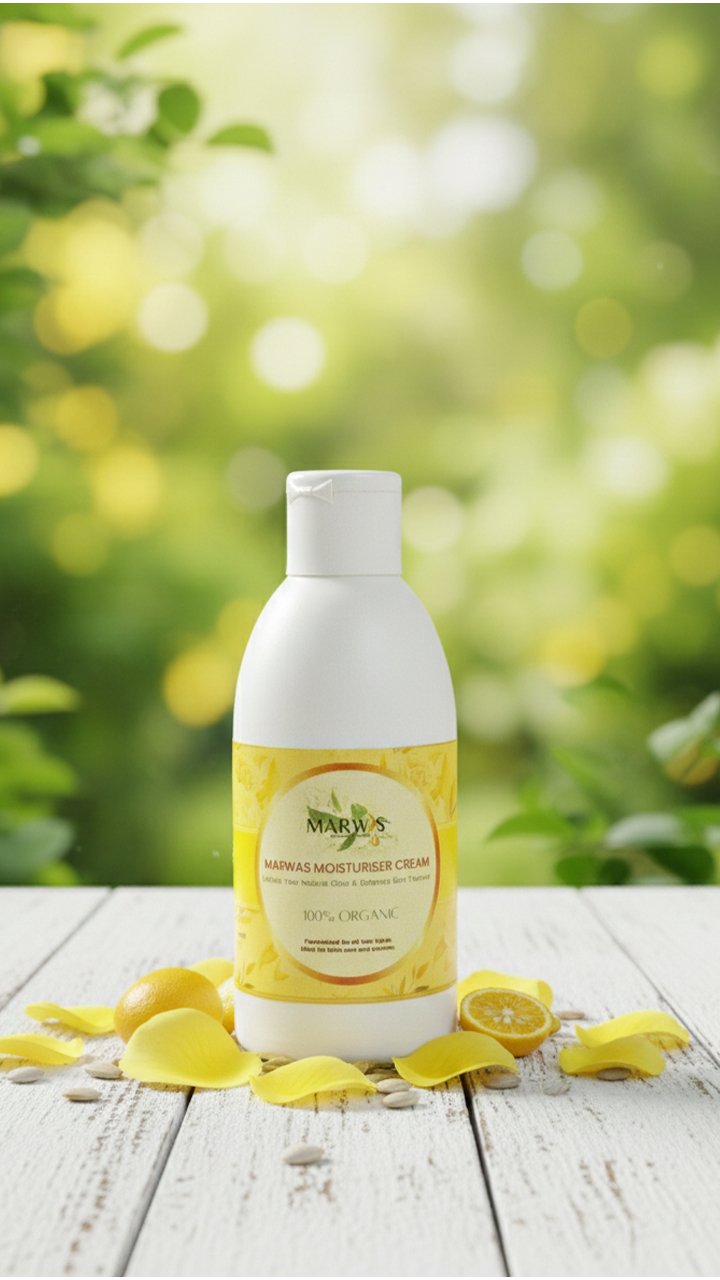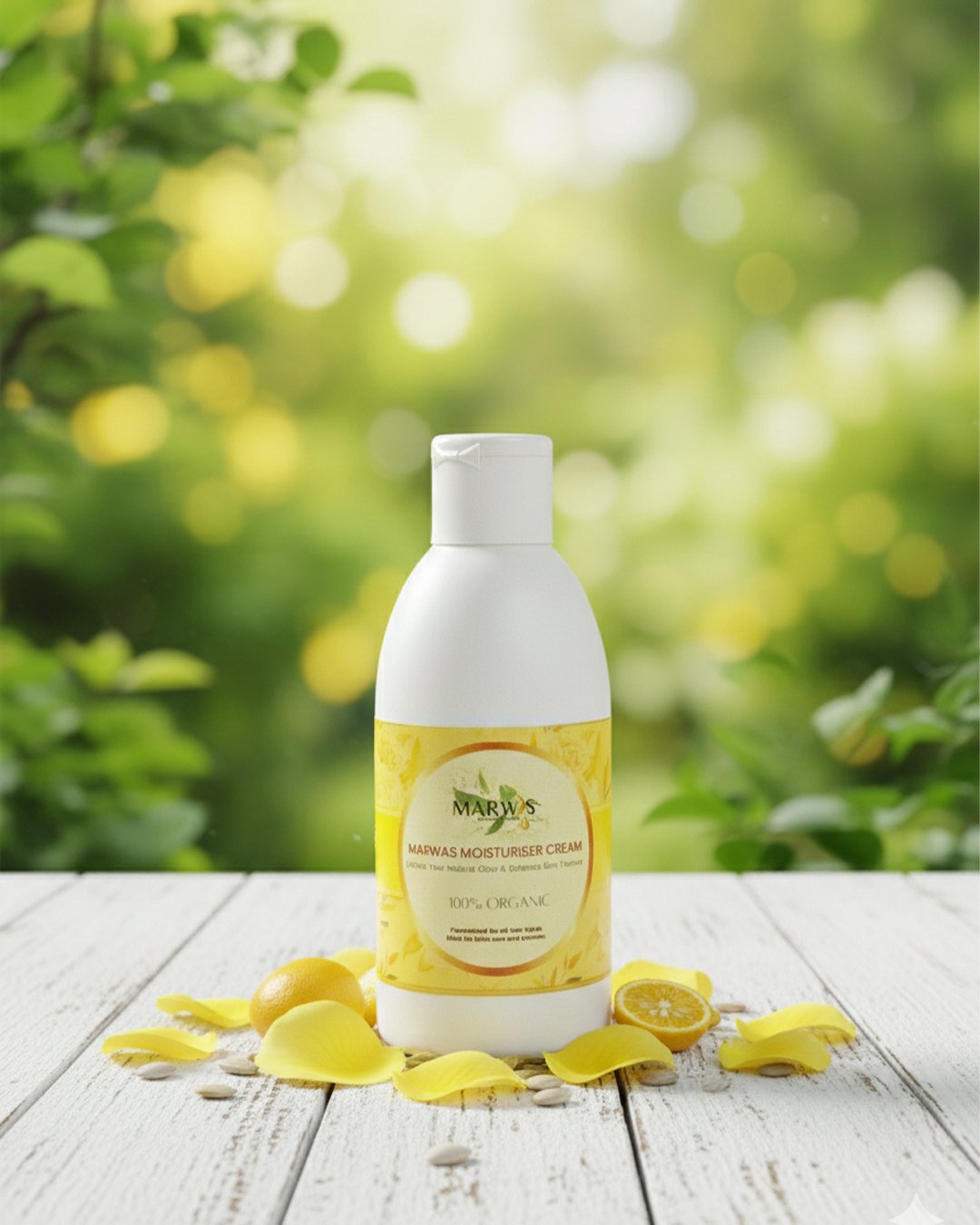 Marwas Natural Moisturizer is a gentle, hydrating formula crafted with nourishing botanical extracts to keep your skin soft, smooth, and naturally healthy. Its lightweight texture absorbs quickly, delivering long-lasting moisture without greasiness while helping restore the skin’s natural balance. Enriched with soothing and skin-repairing ingredients, it protects against dryness, enhances elasticity, and leaves your skin feeling refreshed and radiant throughout the day. Perfect for daily use and suitable for all skin types.